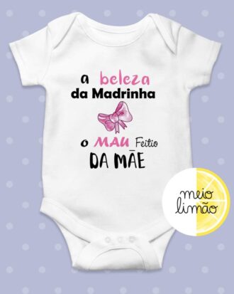 Body, 100% algodão, manga curta ou comprida, disponível nos tamanhos: 1 mês, 3 meses, 6 meses, 12 meses, 18 meses e 24 meses.