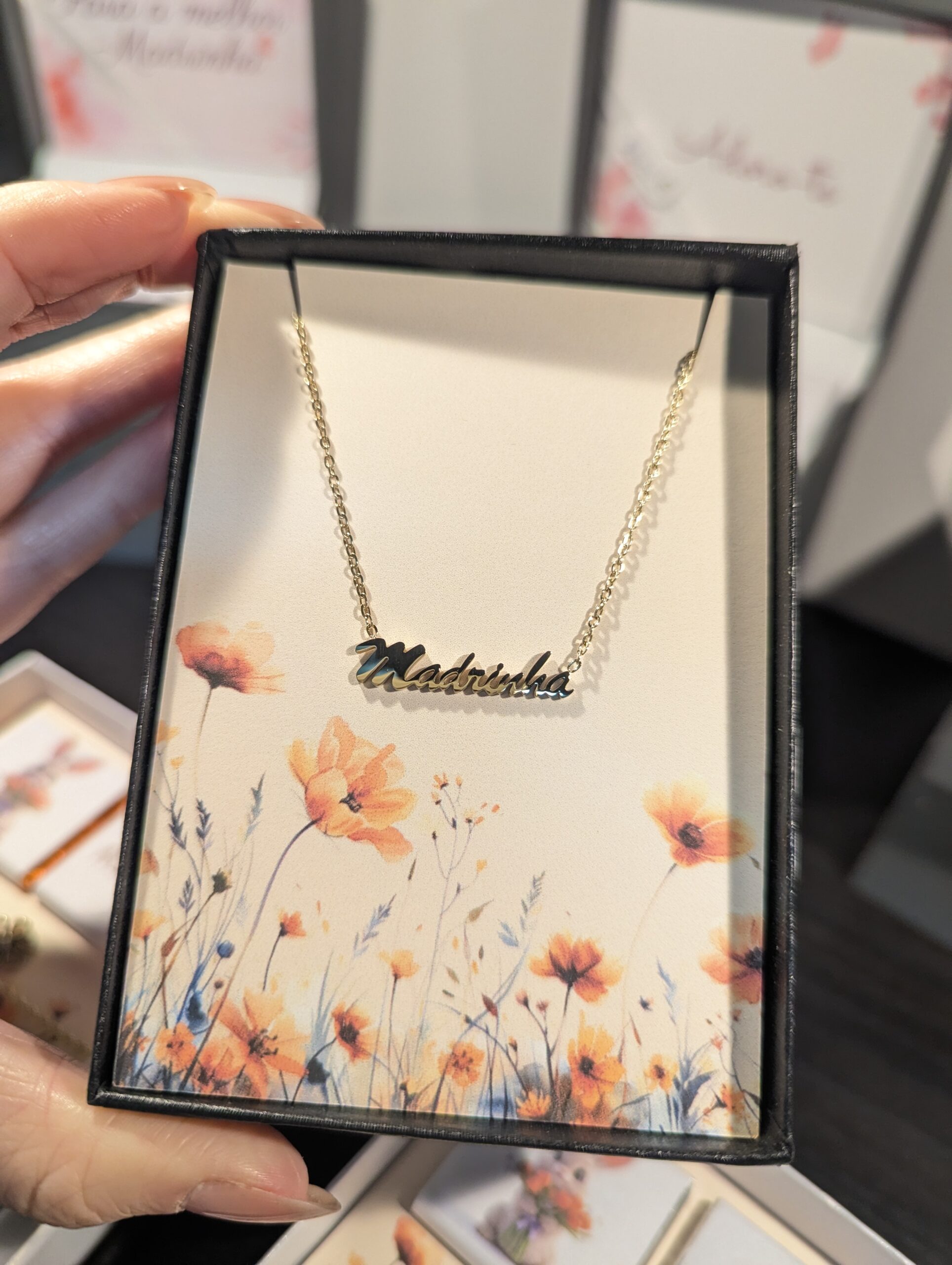 Surpreende a tua madrinha com um presente simples, elegante e cheio de significado: um colar em aço inoxidável dourado com a palavra “Madrinha”.