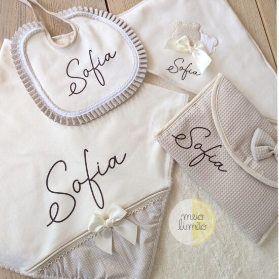 Peças essenciais: mantas, lençóis, babetes, bodies, capas, etc. — tudo coordenado