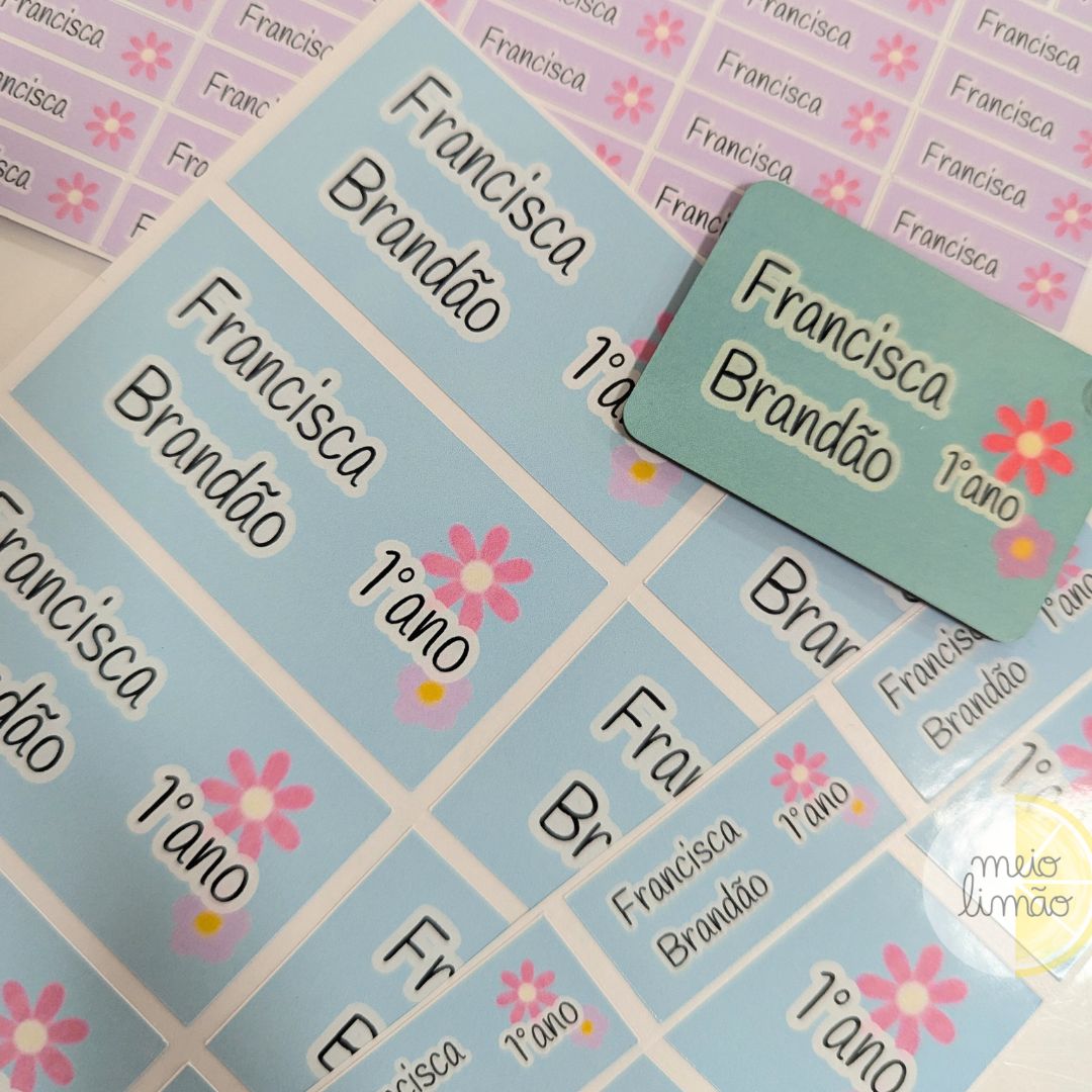 Nota: as etiquetas são indicadas para o material escolar, não para vestuário.