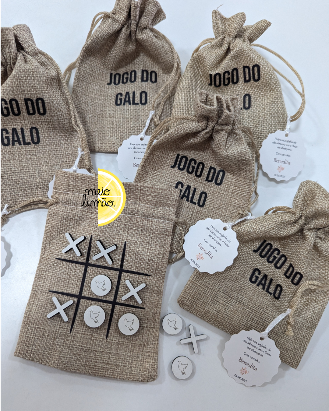 O jogo pode incluir apenas as peças do jogo do galo, apenas as peças do jogo da memória ou as peças dois dois jogos.