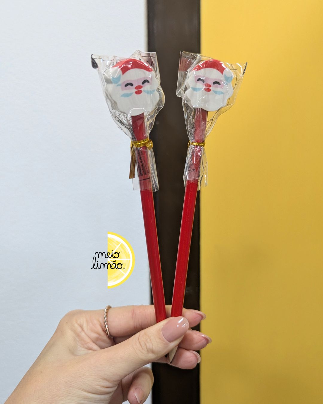 Torna o Natal ainda mais especial com este lápis de carvão: o corpo é pintado de vermelho e no topo tem uma borracha com a carinha do Pai Natal.